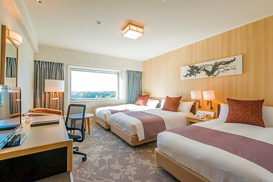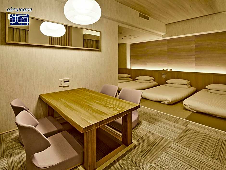 Featuring ink paintings on traditional Japanese washi paper, this more spacious room features simple Japanese-style wooden decor and carpeted floors specifically designed for this room type. Rooms feature two small double beds 47 in wide.