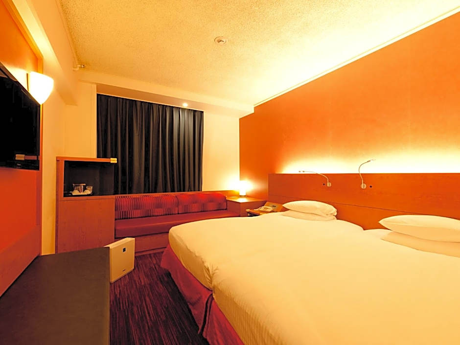 Featuring ink paintings on traditional Japanese washi paper, this more spacious room features simple Japanese-style wooden decor and carpeted floors specifically designed for this room type. Rooms feature two small double beds 47 in wide.
